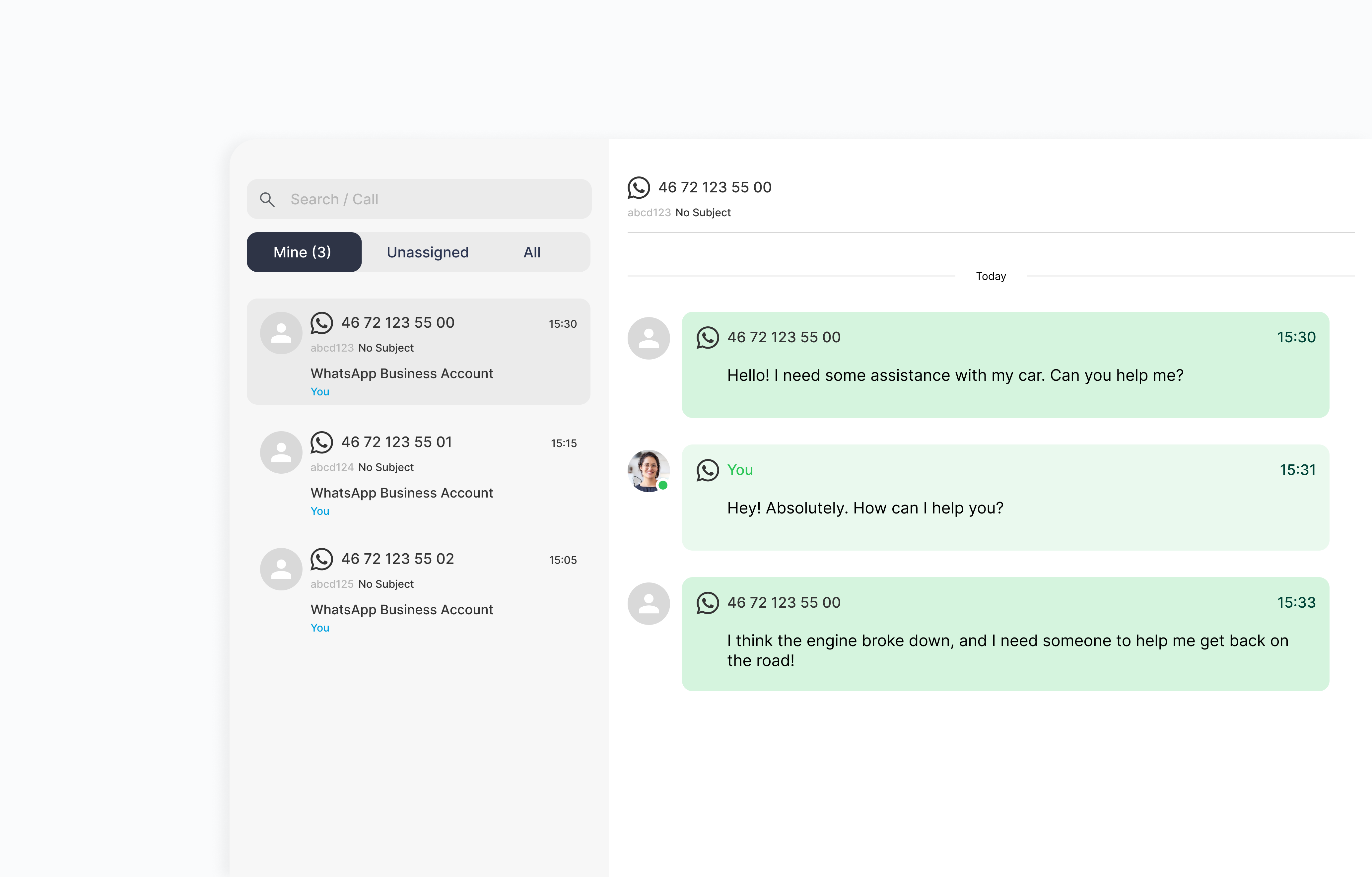 Saksbehandling med WhatsApp-integrasjon er en funksjon som lar deg kommunisere direkte med kundene dine via WhatsApp, en av verdens mest brukte meldingsplattformer. Funksjonen bidrar til å effektivisere kundesupporten din ved å samle tale- og chatkommunikasjon i én og samme plattform, og lar deg møte kundene dine der de allerede er.