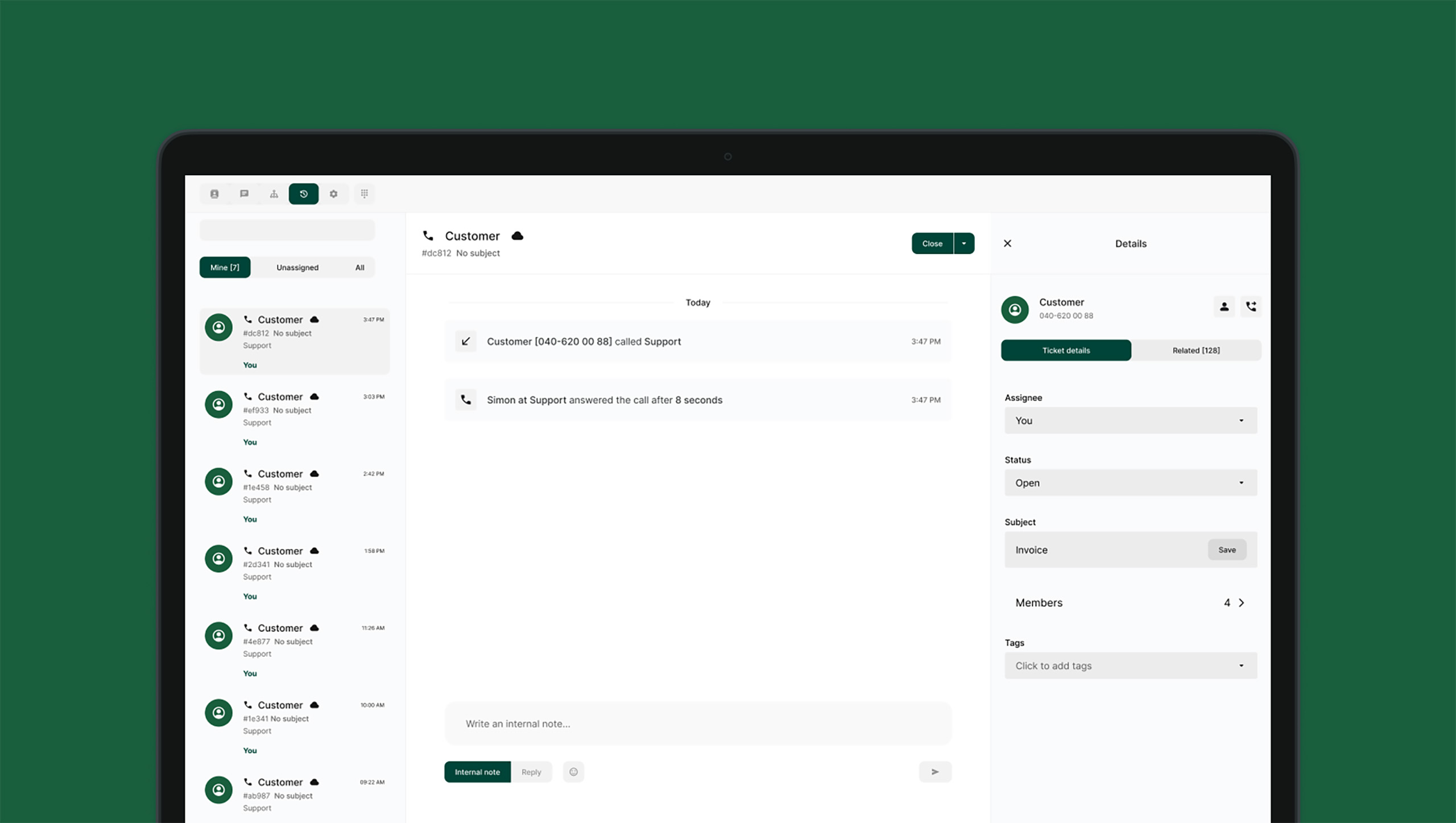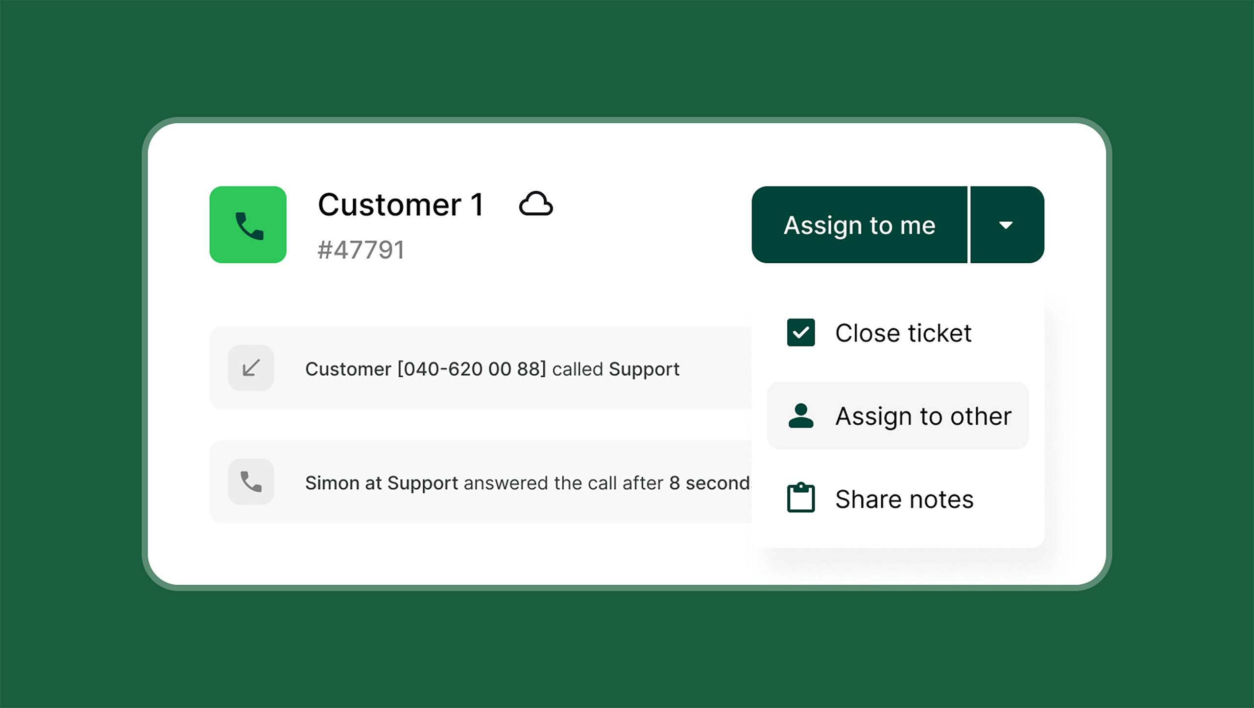Alla inkommande samtal, WhatsApp-meddelanden och (snart) e-post blir automatiskt ärenden, så inget faller mellan stolarna